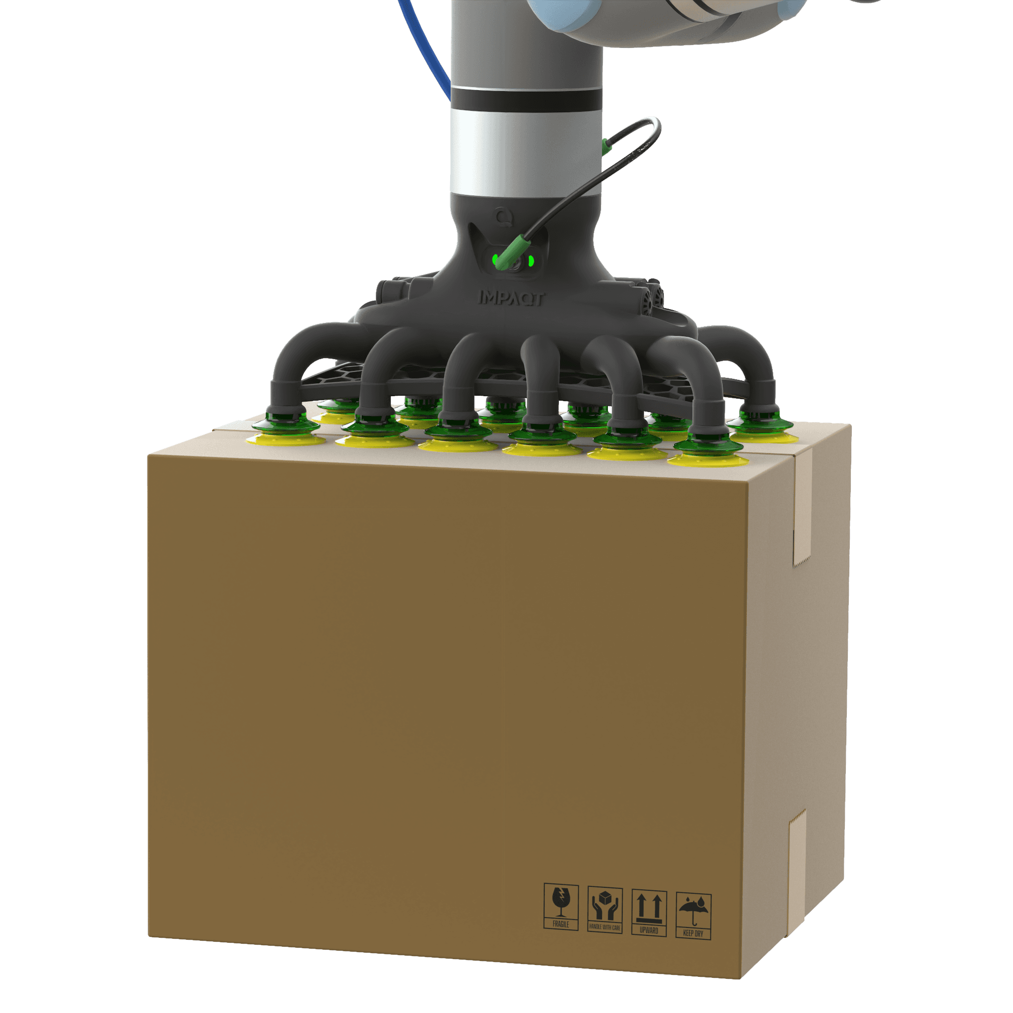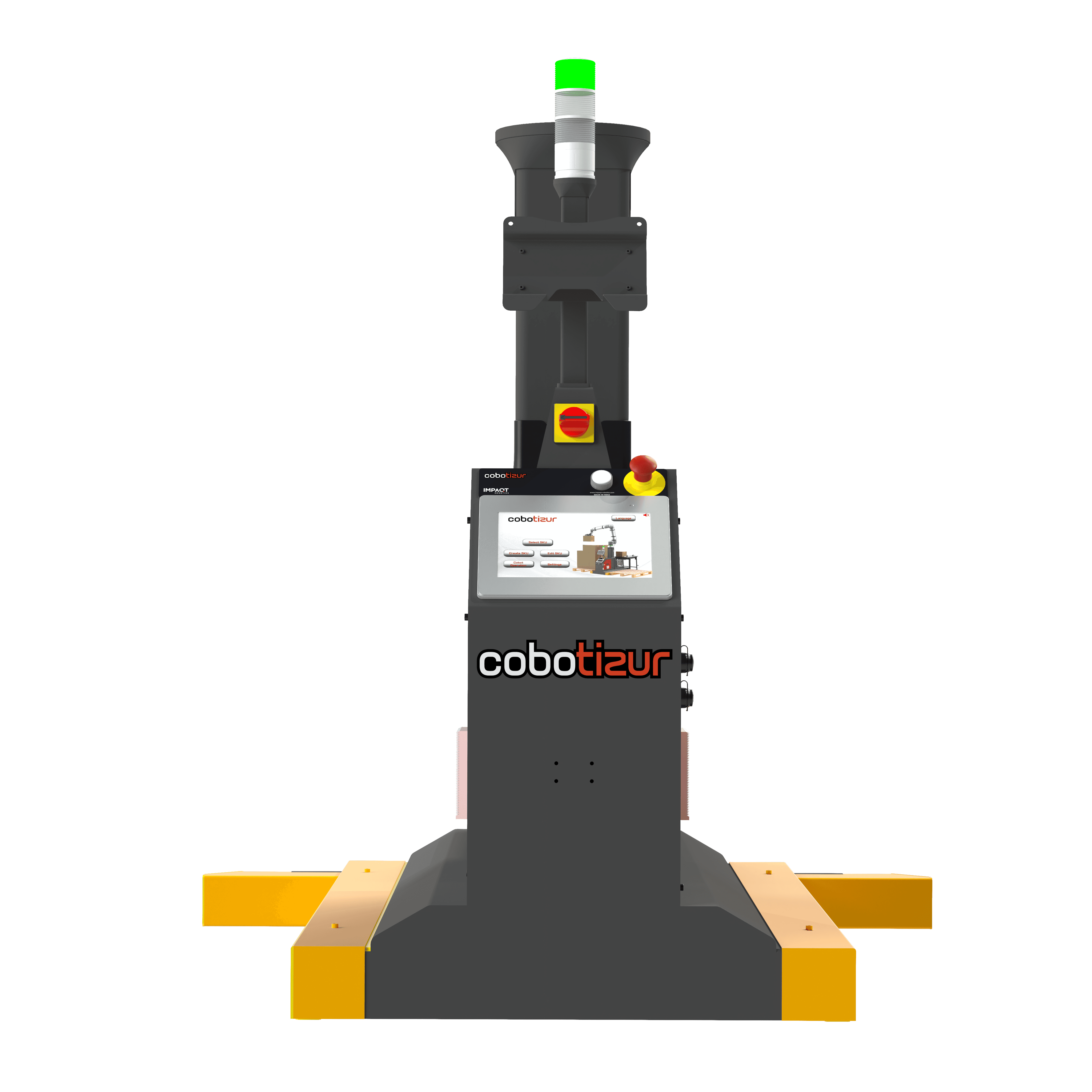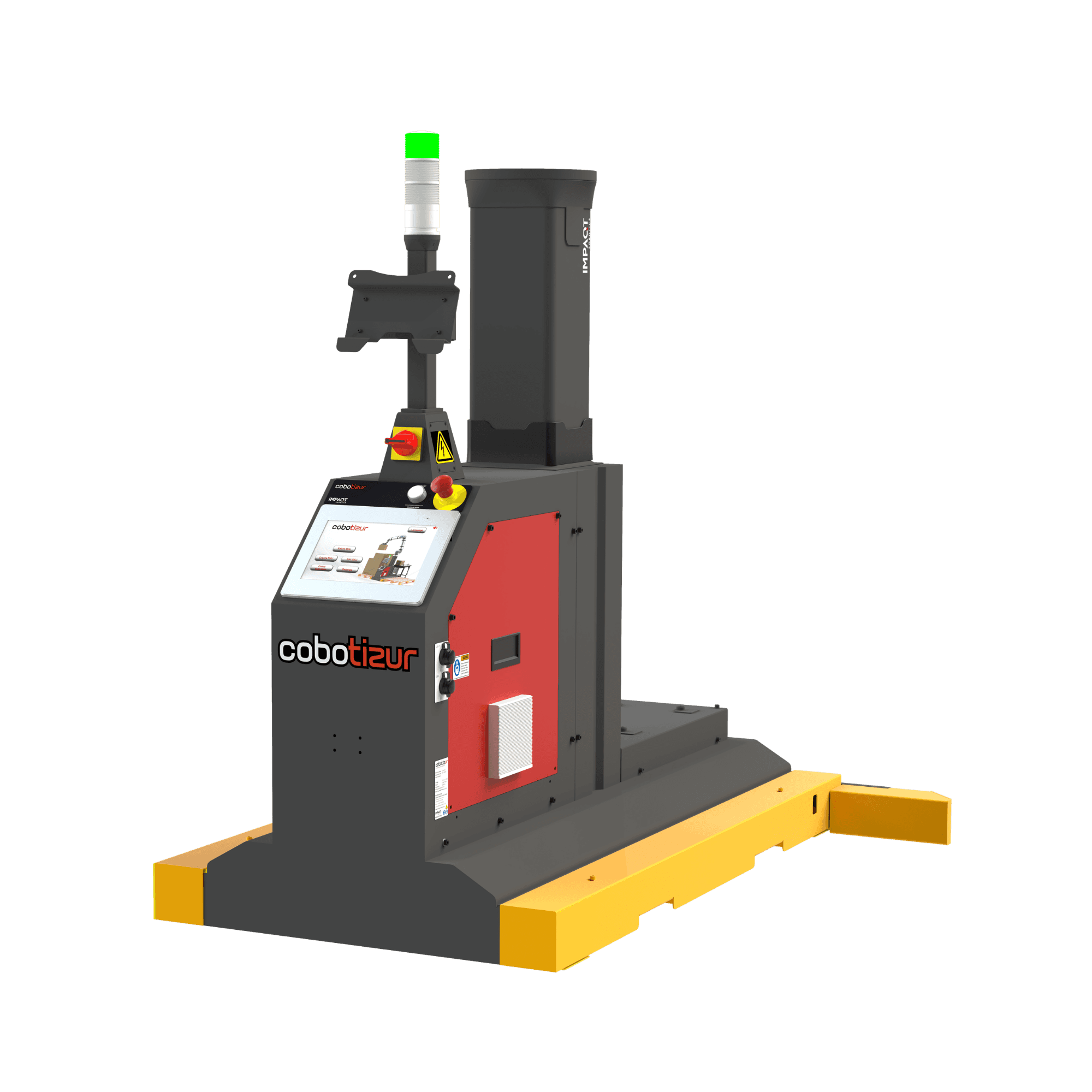 Impaqt Robotics hardware with essential controls included, supplied without gripper and palletizing software so you can integrate the solution of your choice, with optional extras for flexibility.