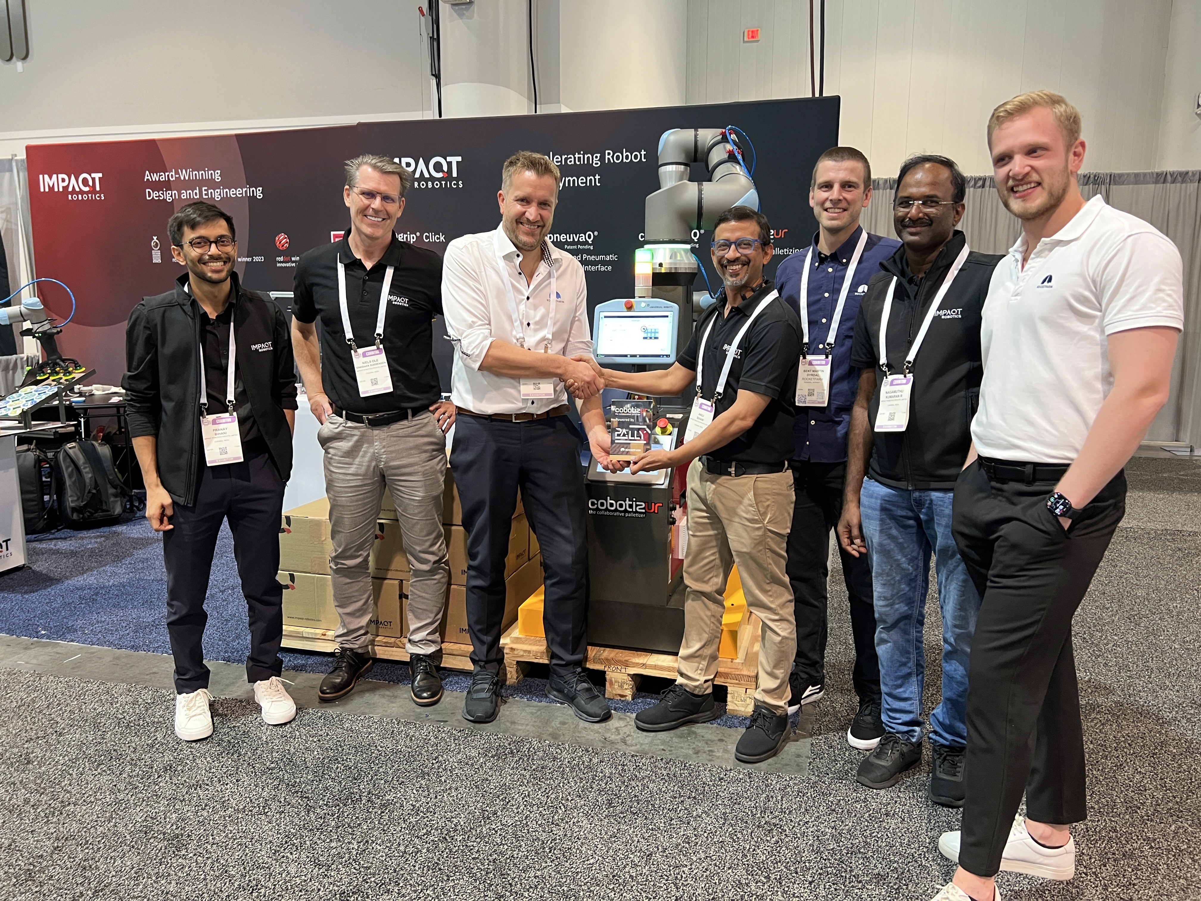 Chennai, India / Sogndal, Norway – October 17, 2025 – Impaqt Robotics and Rocketfarm have introduced cobotizur Powered by Pally, an evolution of the cobotizur platform that reduces deployment time and meets growing palletizing complexity. The partnership brings together Impaqt Robotics’ cobotizur platform, the world’s first UR+ approved collaborative palletizer, and Rocketfarm’s Pally software in one solution that combines proven hardware with advanced palletizing capabilities.